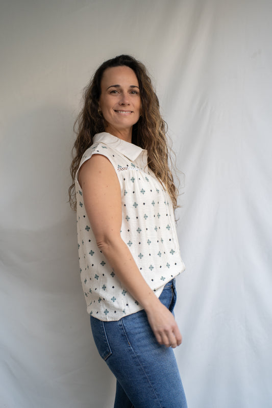 Polera Florisol Verde Bordada