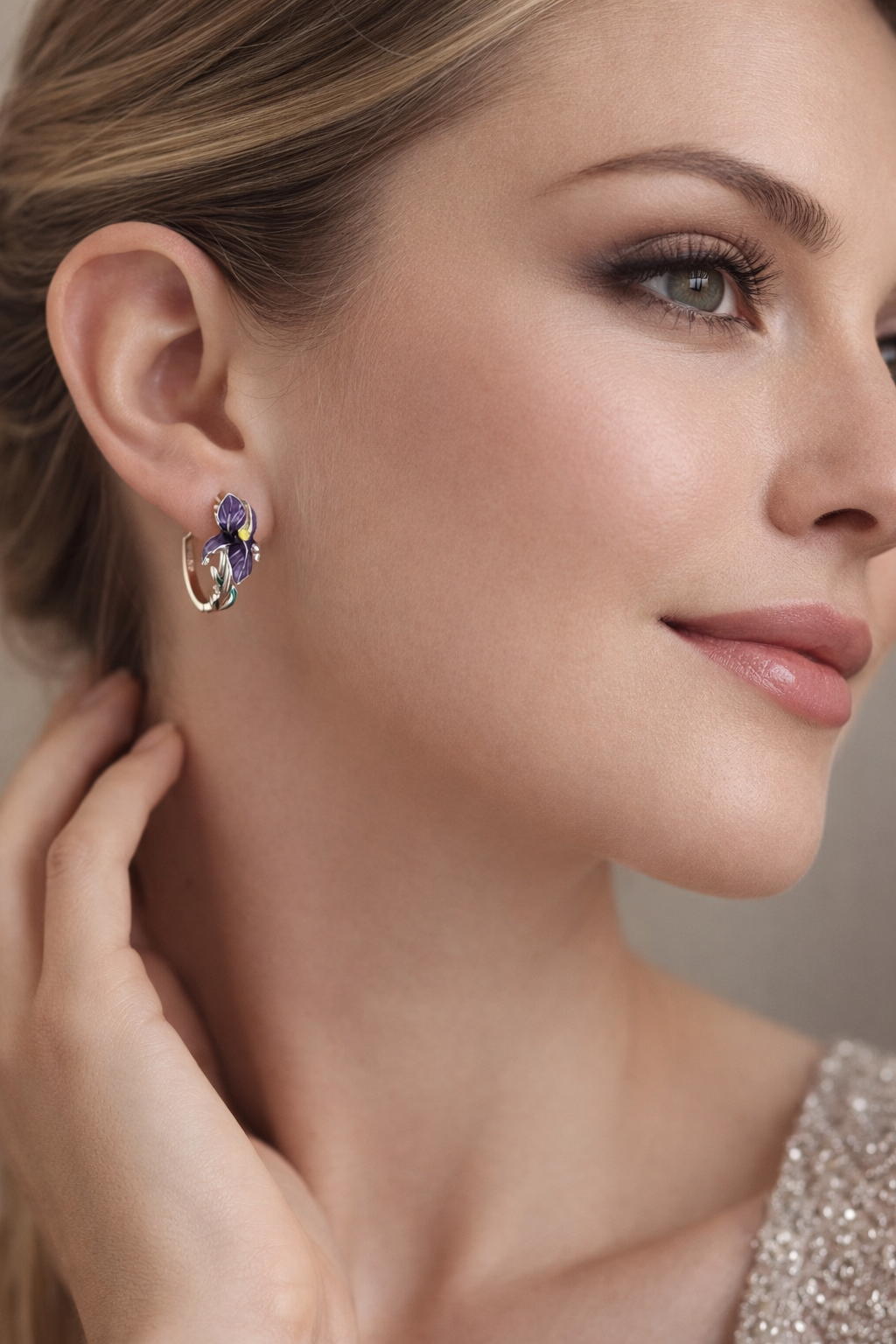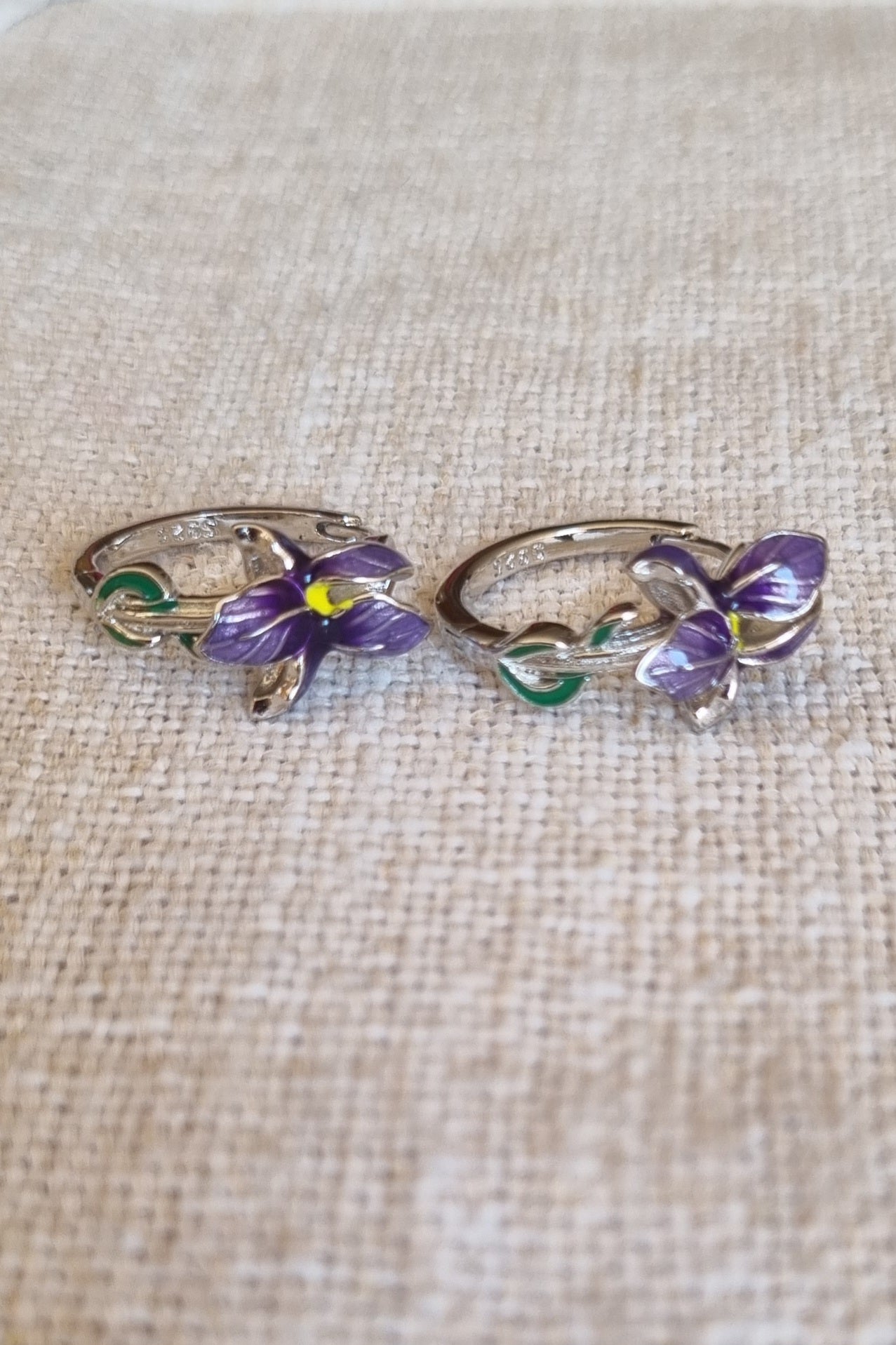 Aros de plata 925 con diseño de flor lila