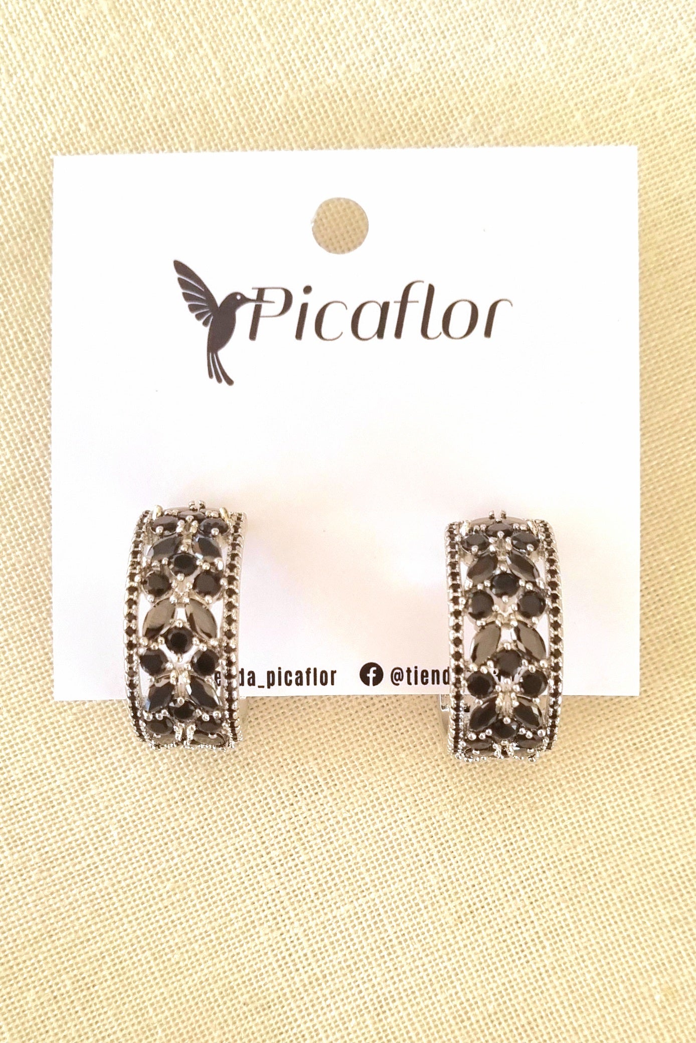 Aro elegante y brillantes. Medida: 2,6cm x 1 cm. Color Negro y plateado