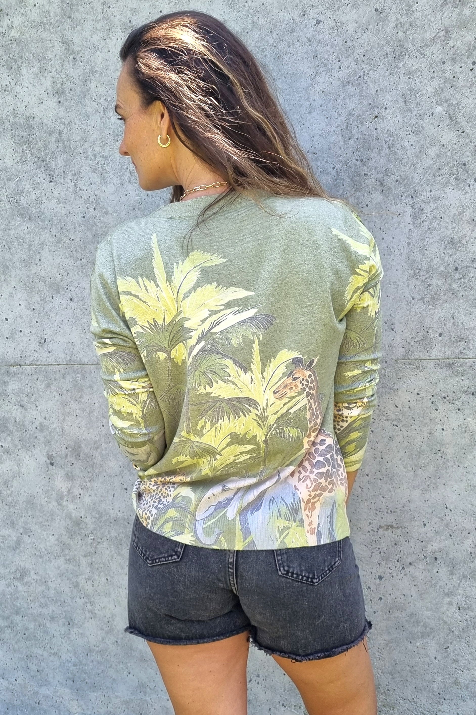 Prenda versátil que combina comodidad y estilo. Este chaleco presenta un cierre frontal de botones y una estética inspirada en la fauna salvaje, con motivos de jirafas y elefantes que aportan carácter distintivo. Confeccionado en un tejido excepcionalmente suave, es la opción ideal para capas elegantes en cualquier ocasión.