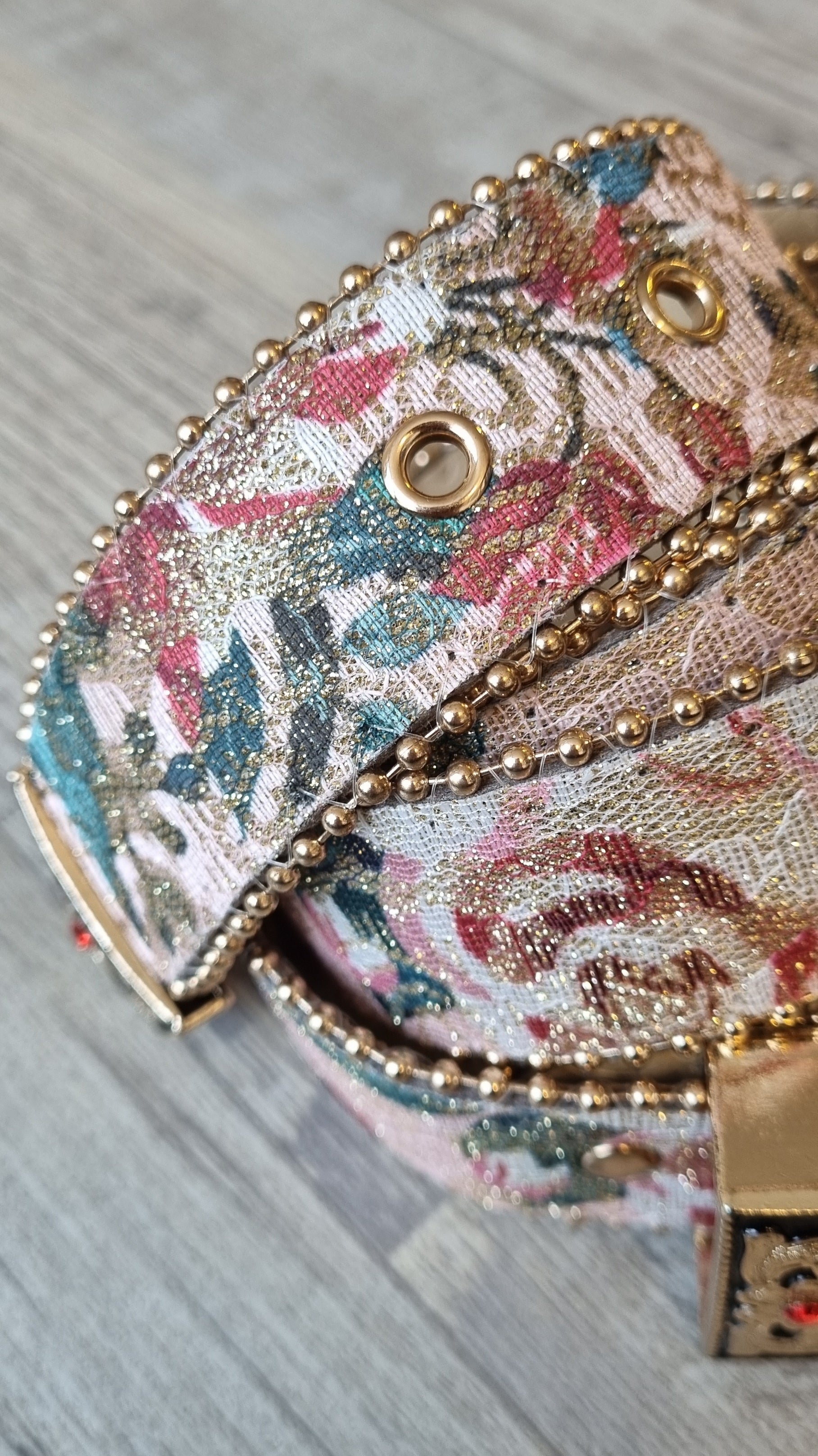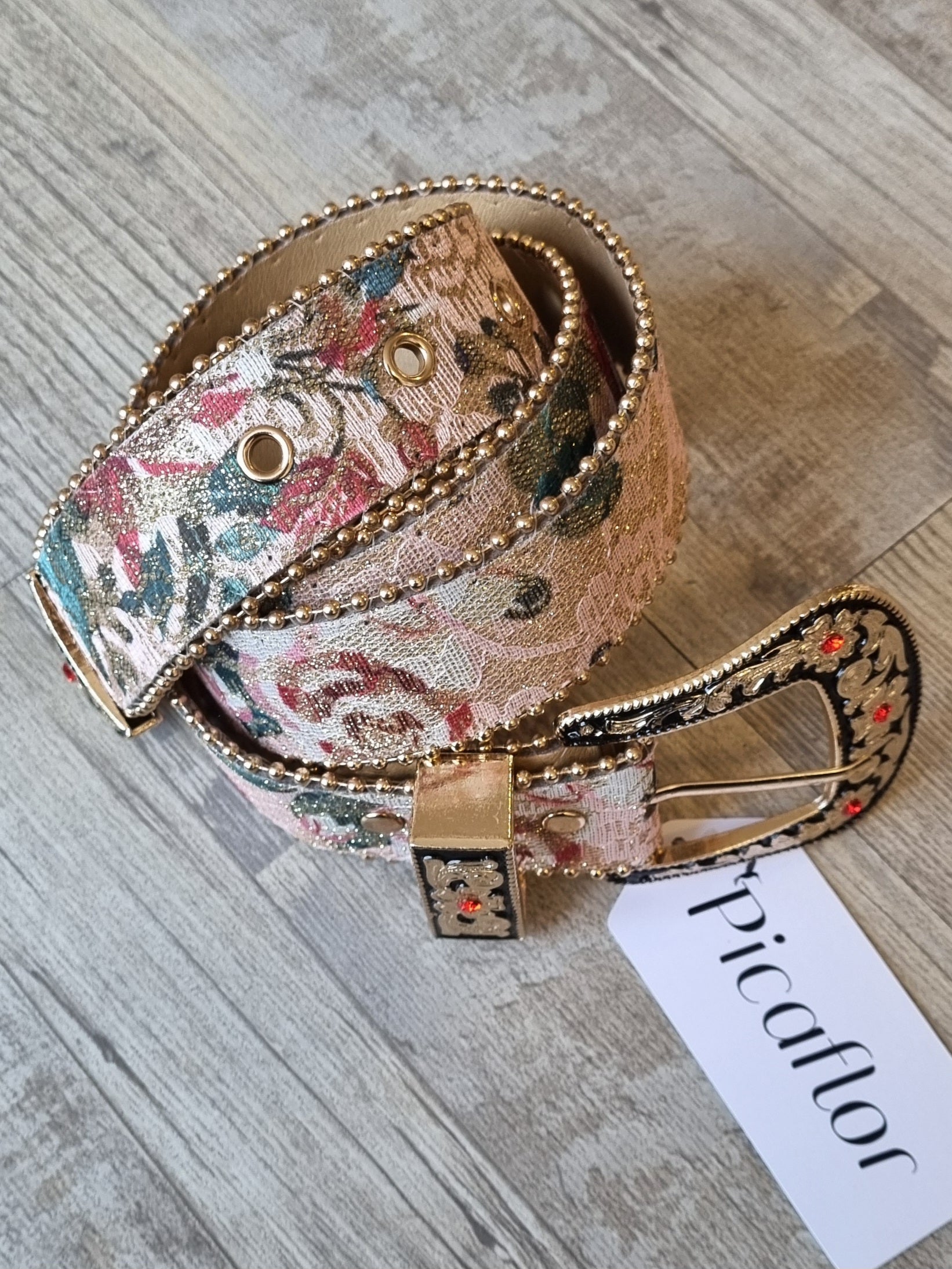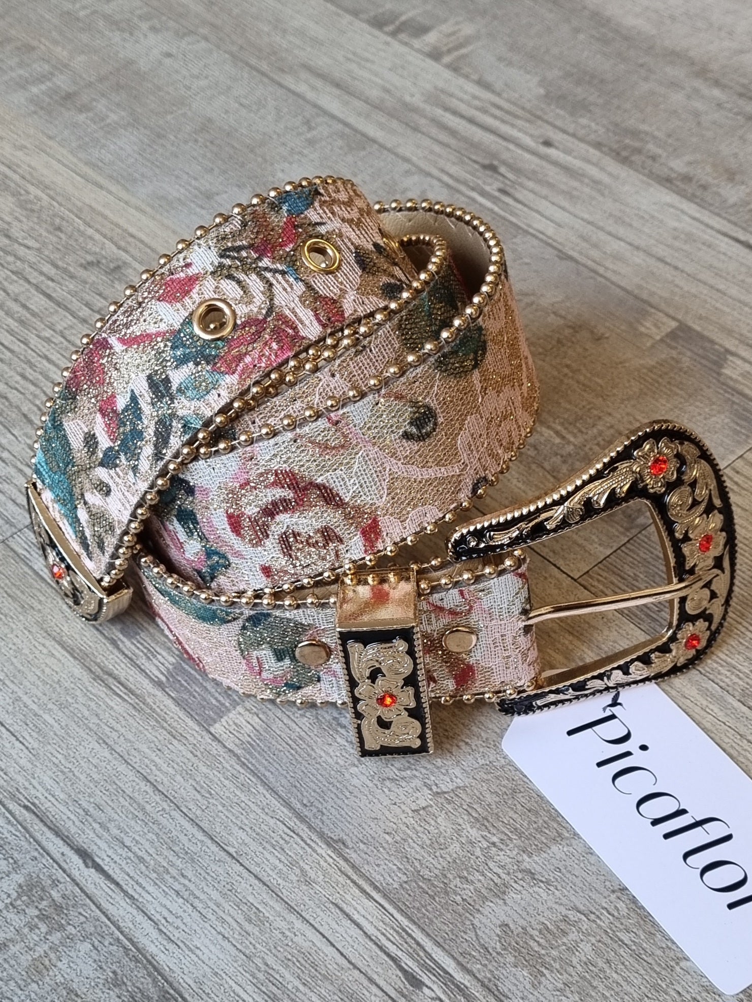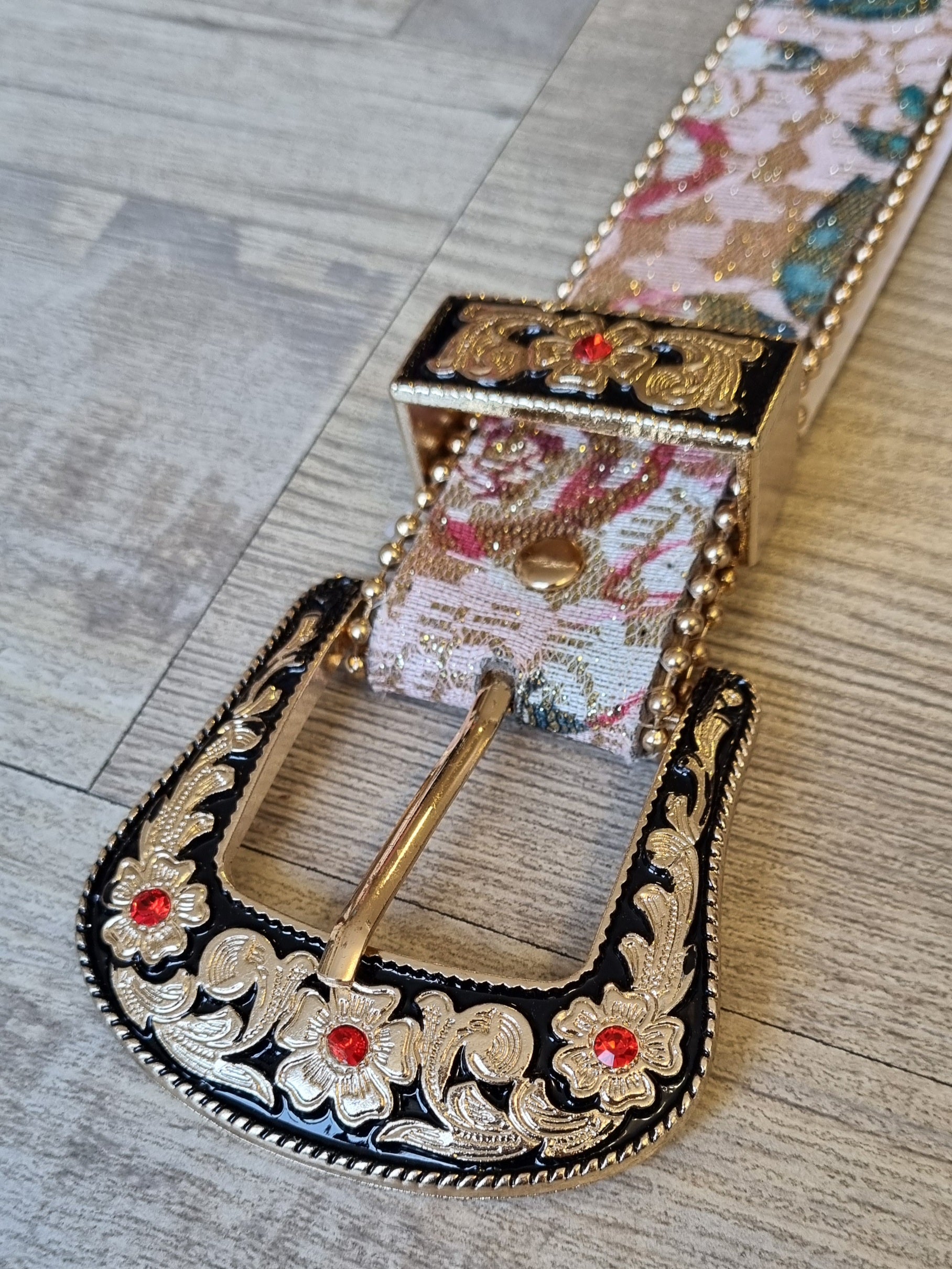 Los cinturones son un accesorio que le sube el pelo a cualquier outfit! Este con su bordado de colores simplemente te encantará!